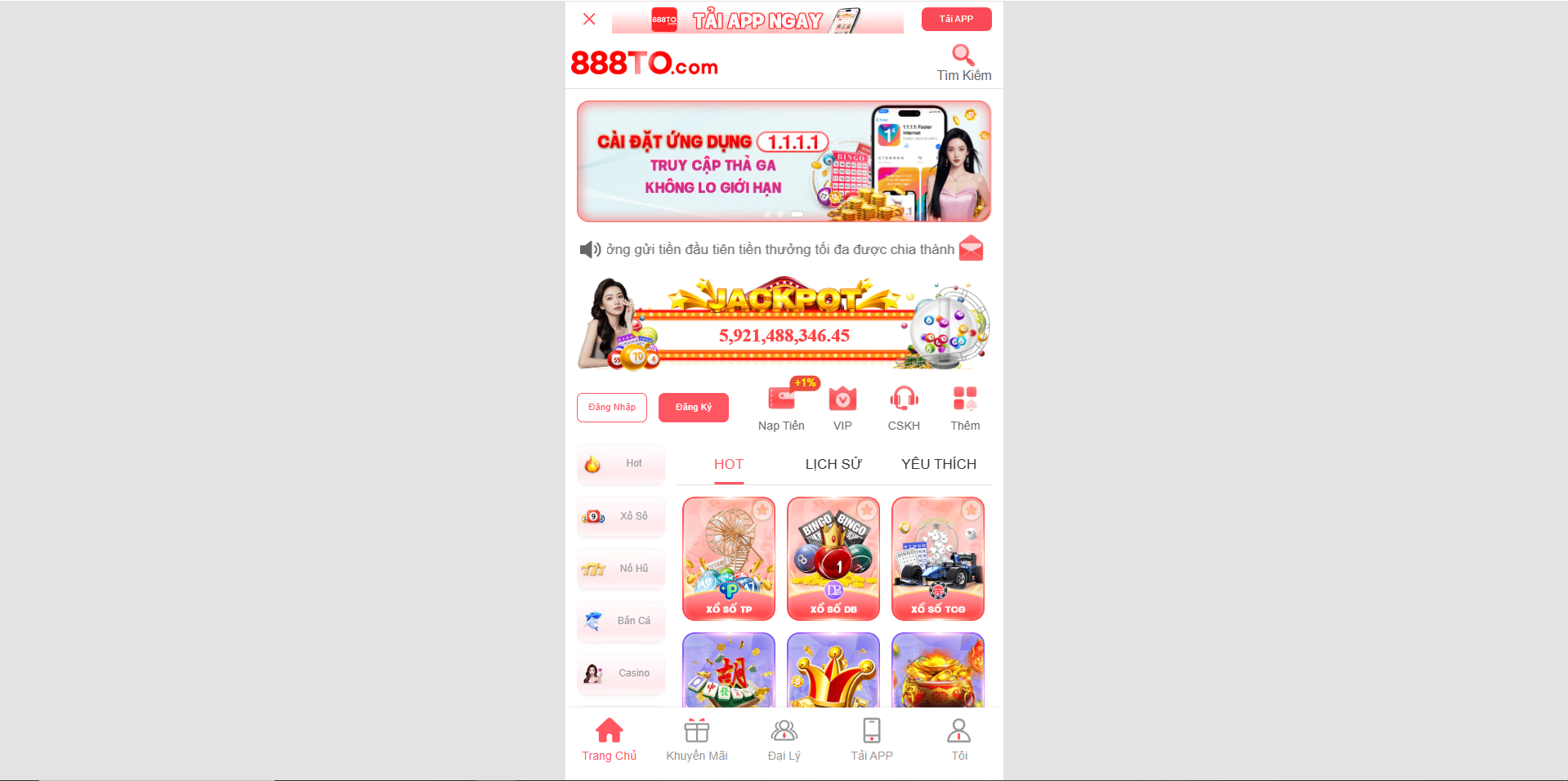Chương trình khuyến mãi hàng ngày, hàng tuần và hàng tháng. Giá trị lên tới 88.000.000, nạp đầu tặng 100%, hoàn trả tới 3%.